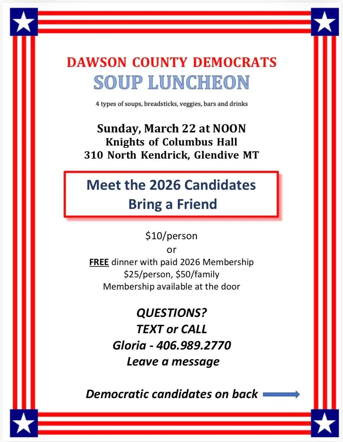 We also welcome Democrats from neighboring Pondera, Toole, and Glacier Counties, making this a fantastic occasion to network and engage with supporters and fellow candidates from the wider area.
