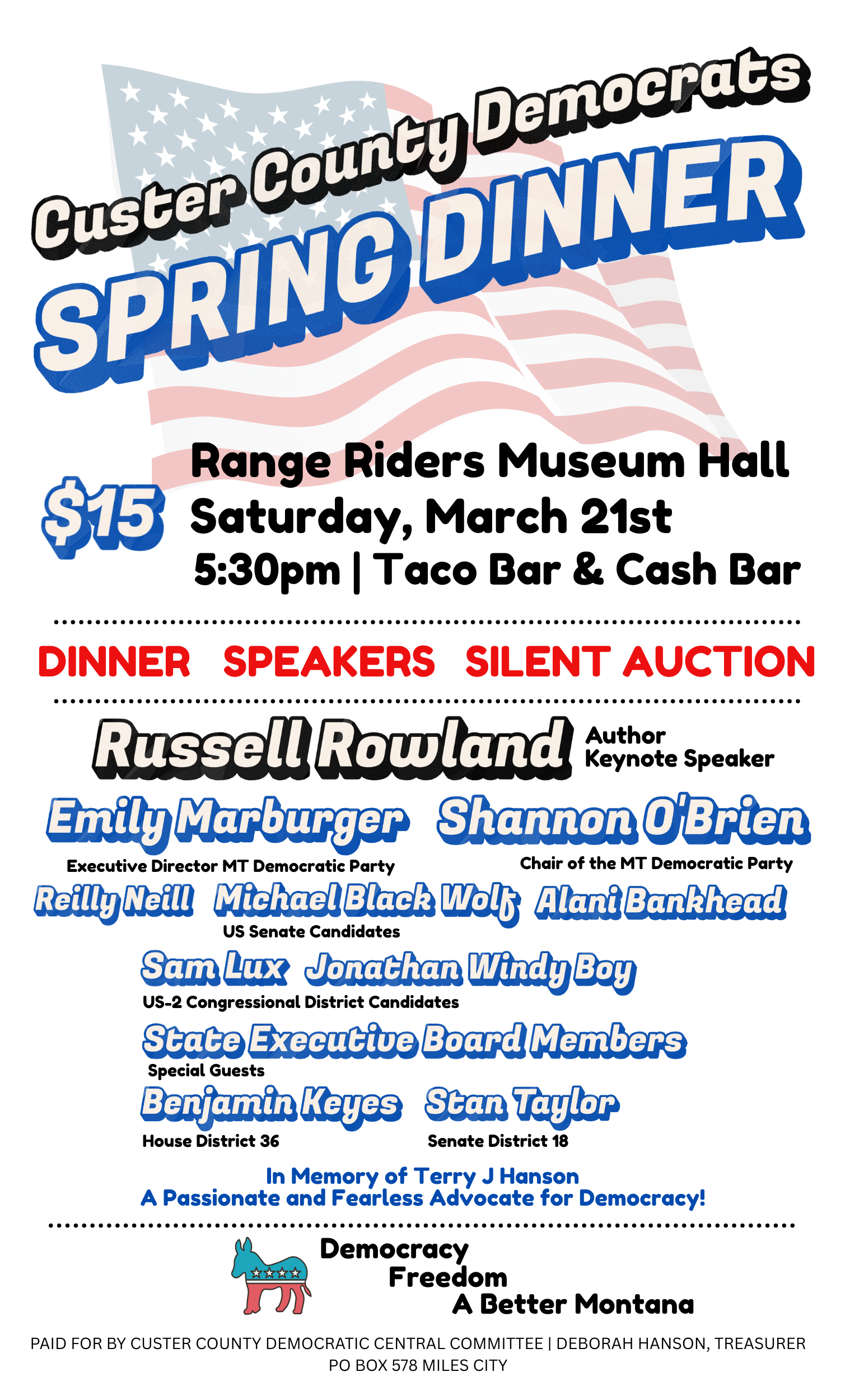 Join Custer County Democrats for their spring dinner in Miles City!